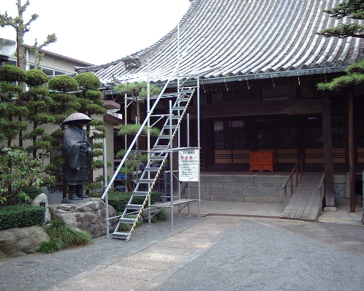 2001(平成十三)年3月、山門屋根瓦を乾式(土無し)工法により葺き替える修復工事が完成。